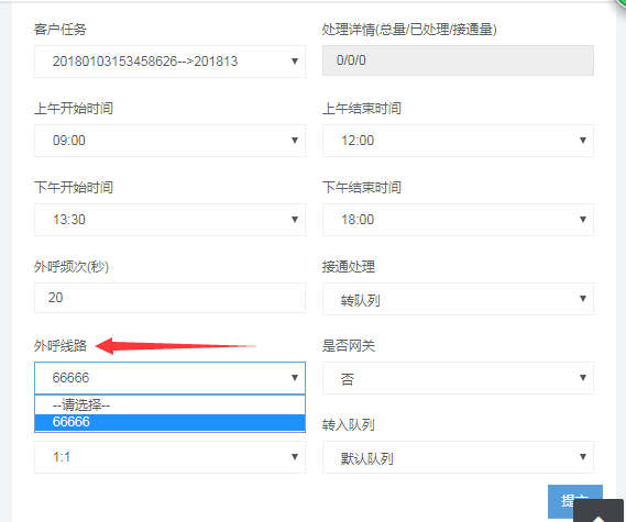 b. 自动外呼任务配置一定要选择线路: