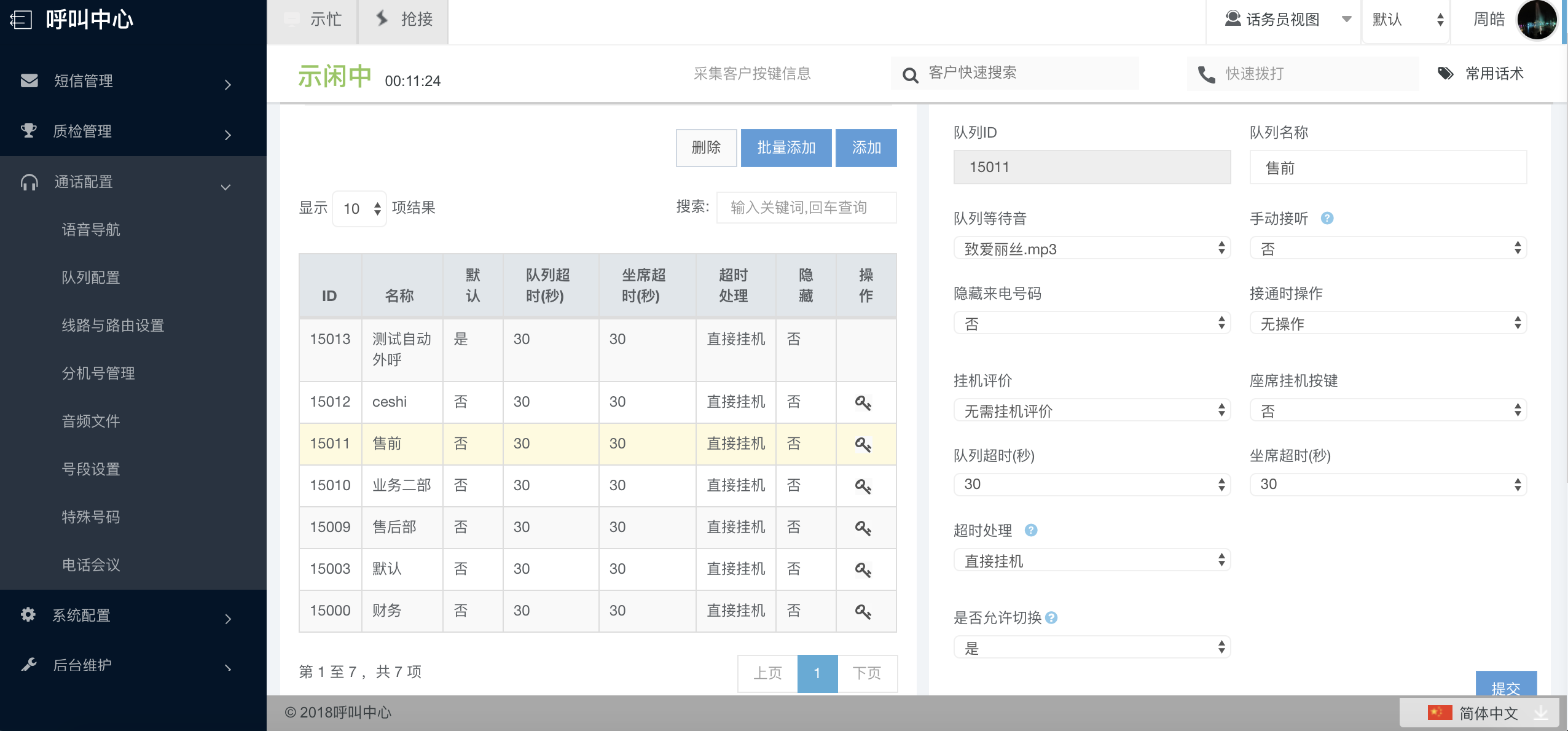 通过菜单树“话务管理—队列配置”进入。