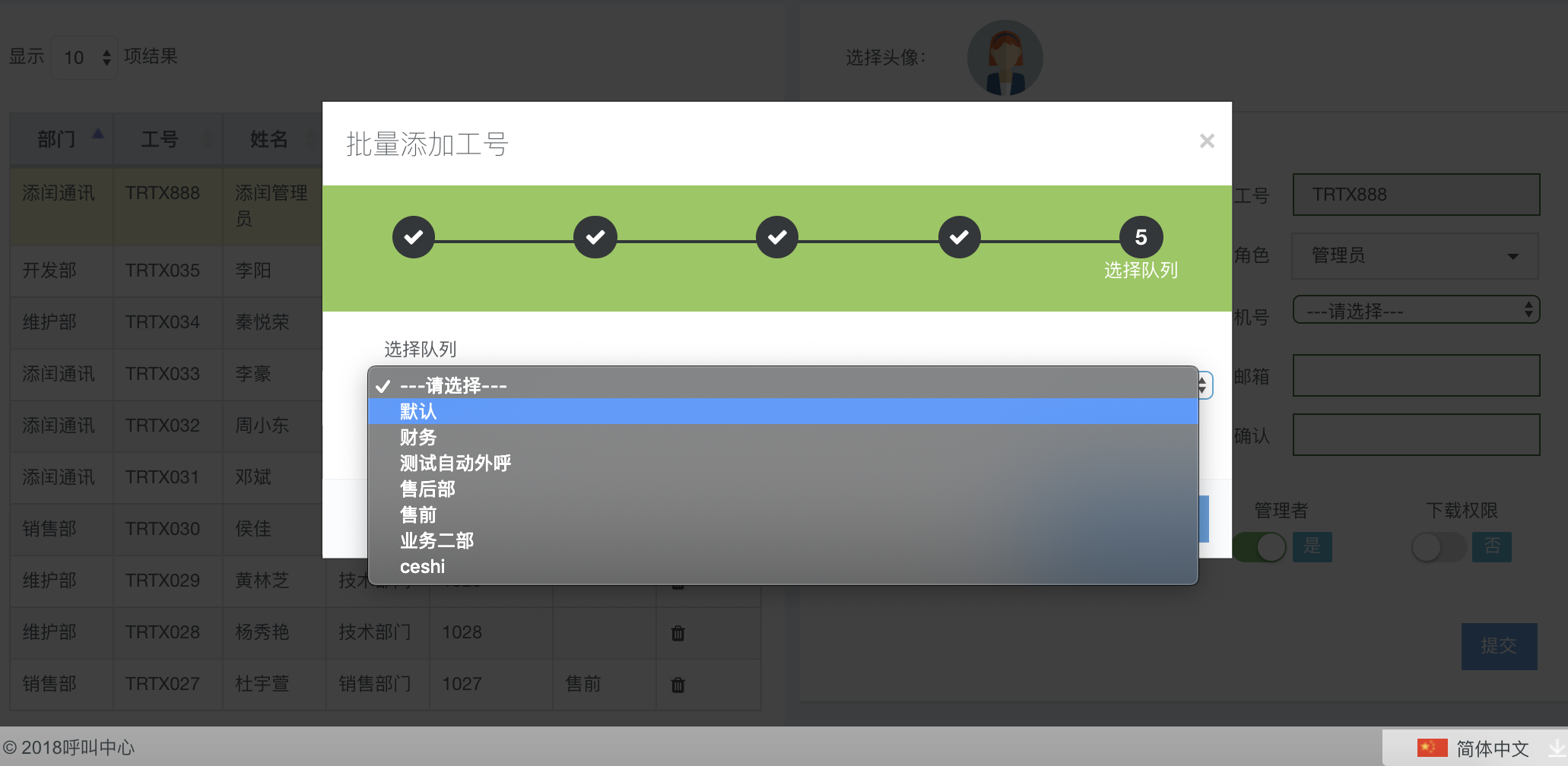 第五步:选择队列。不选择则该批工号归属在默认队列。