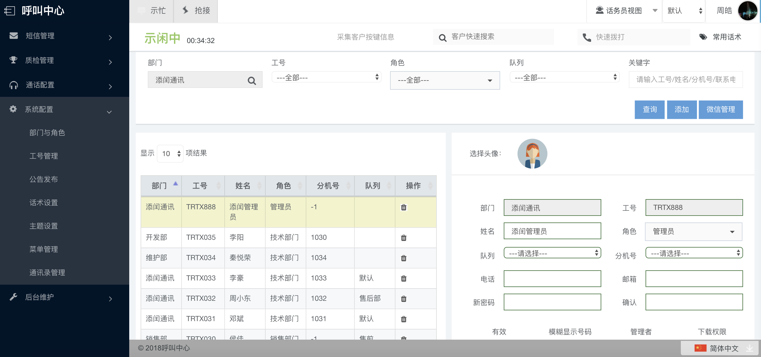 此模块可根据部门、工号、角色、队列或其他信息来查询某一个或一批工号。
