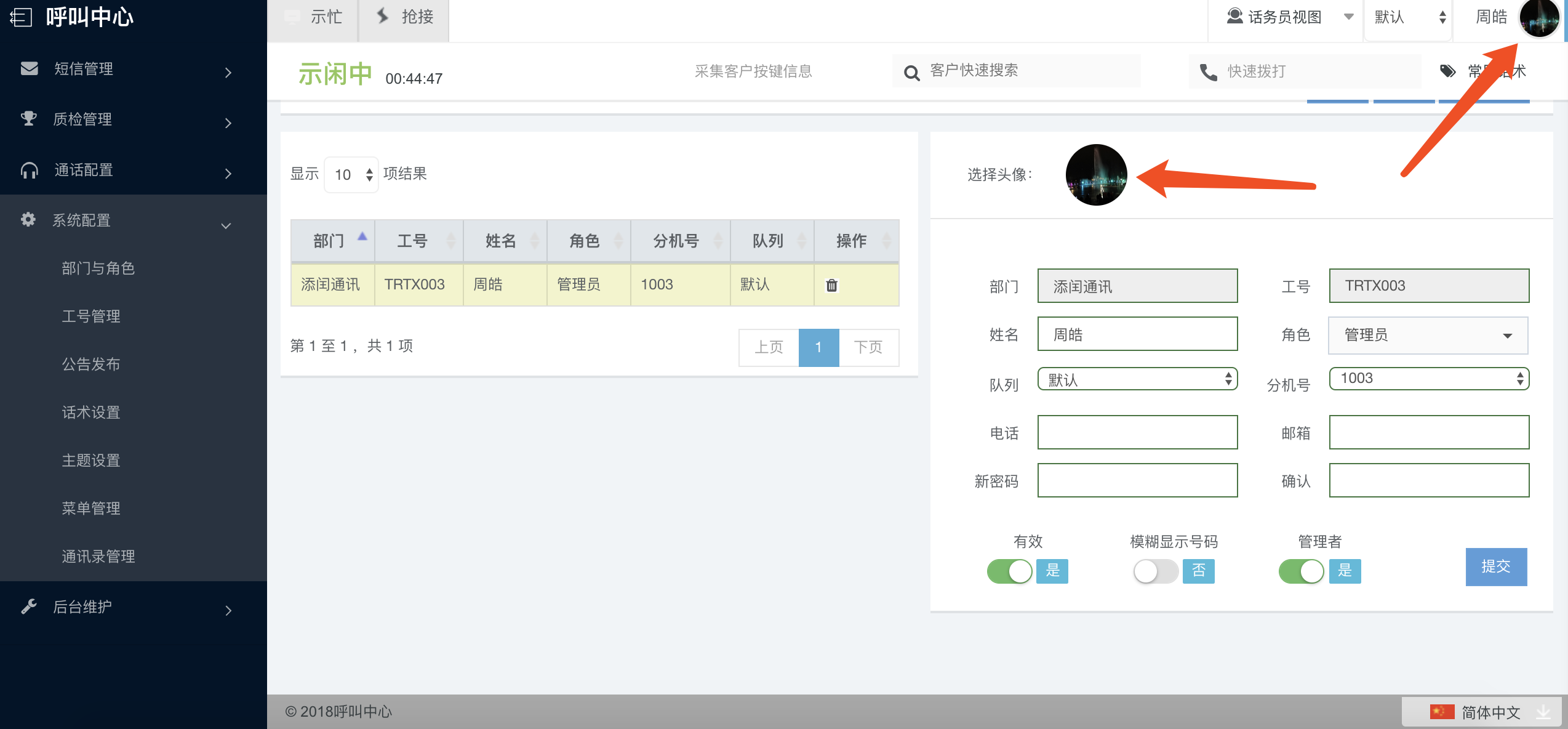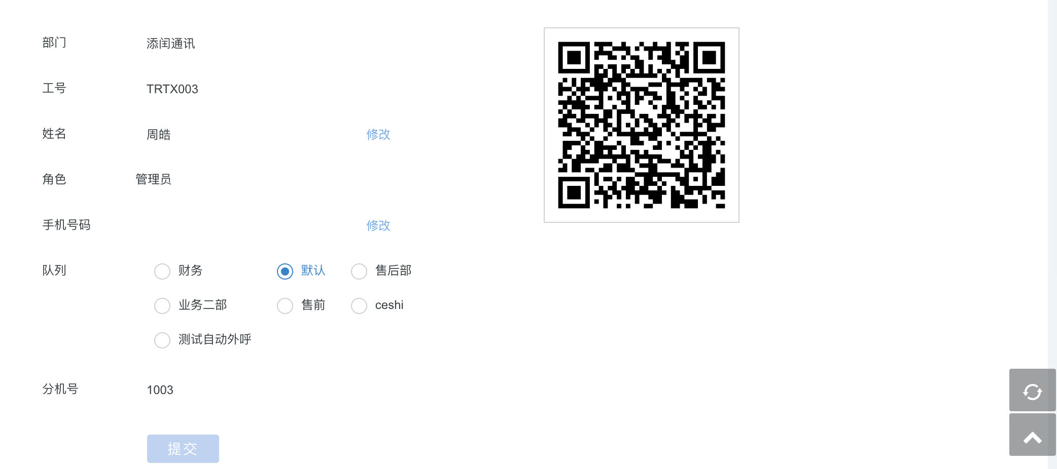 队列列表中可以点击后面的操作图标,将某一队列设置为默认队列。在工号管理模块中,如果不给该工号设置队列,那么该工号存在于默认队列中。