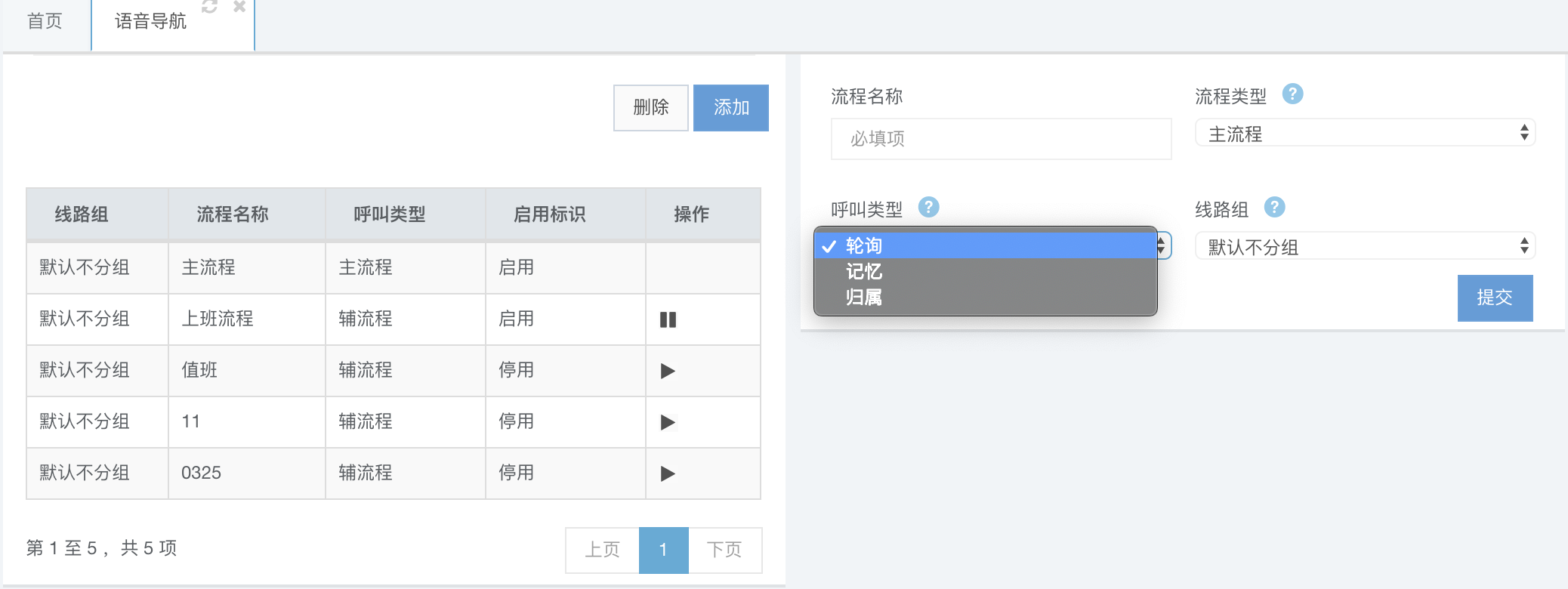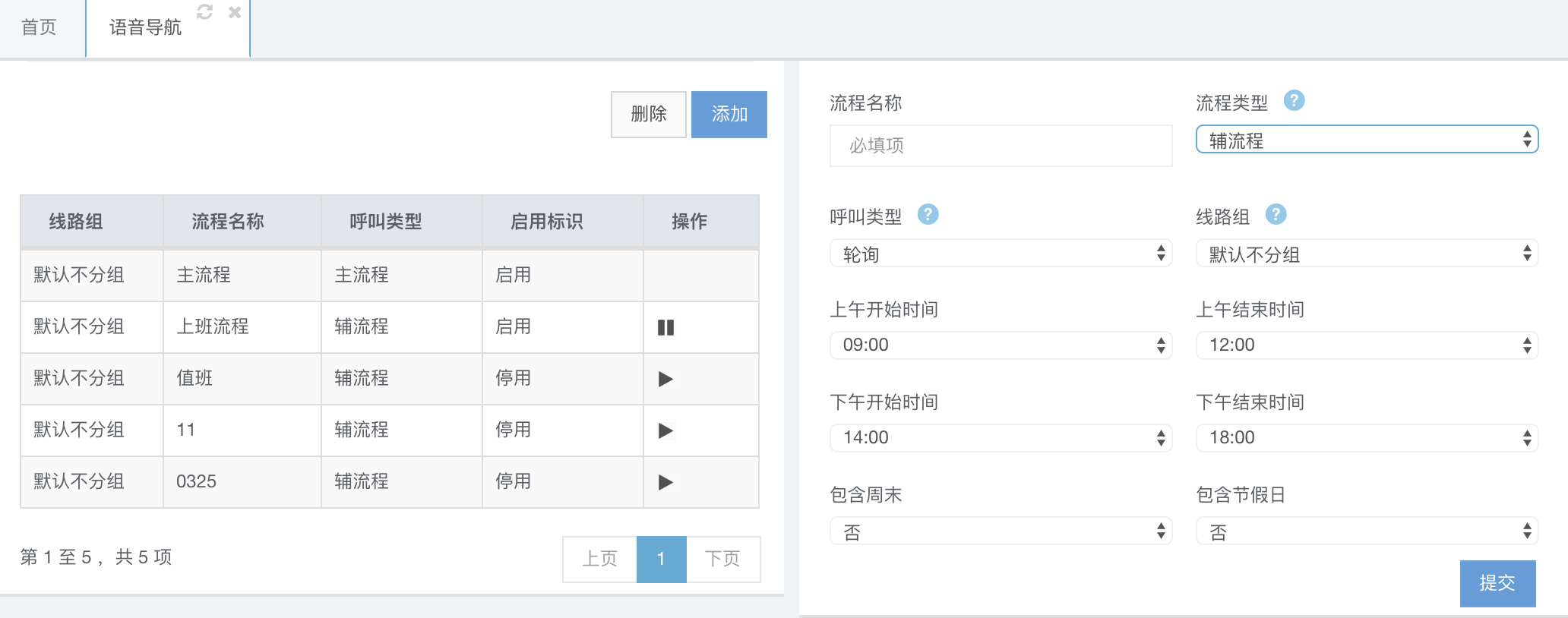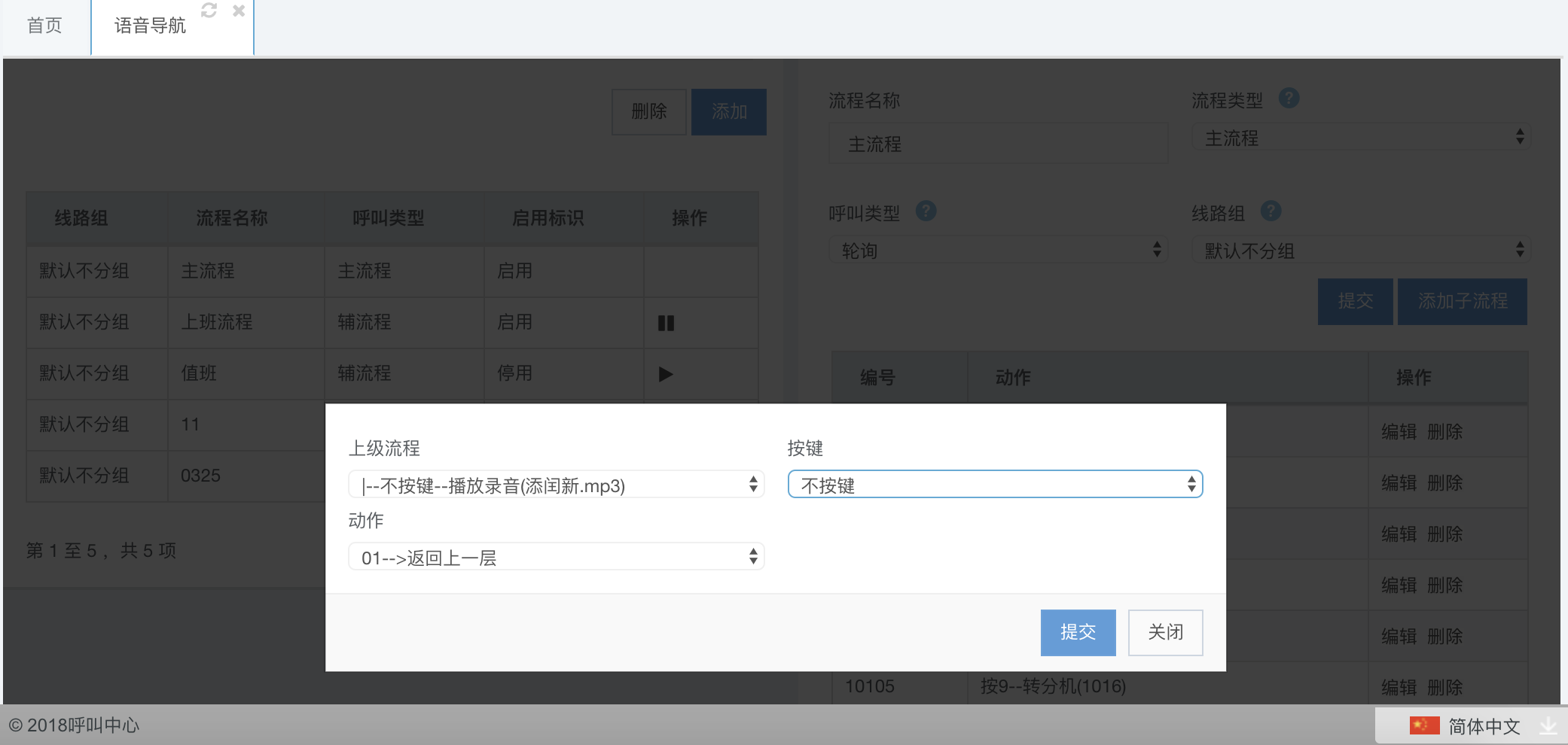 主流程和辅流程配置好之后,开始配置具体的子流程了,子流程就是来电具体的导航路由。