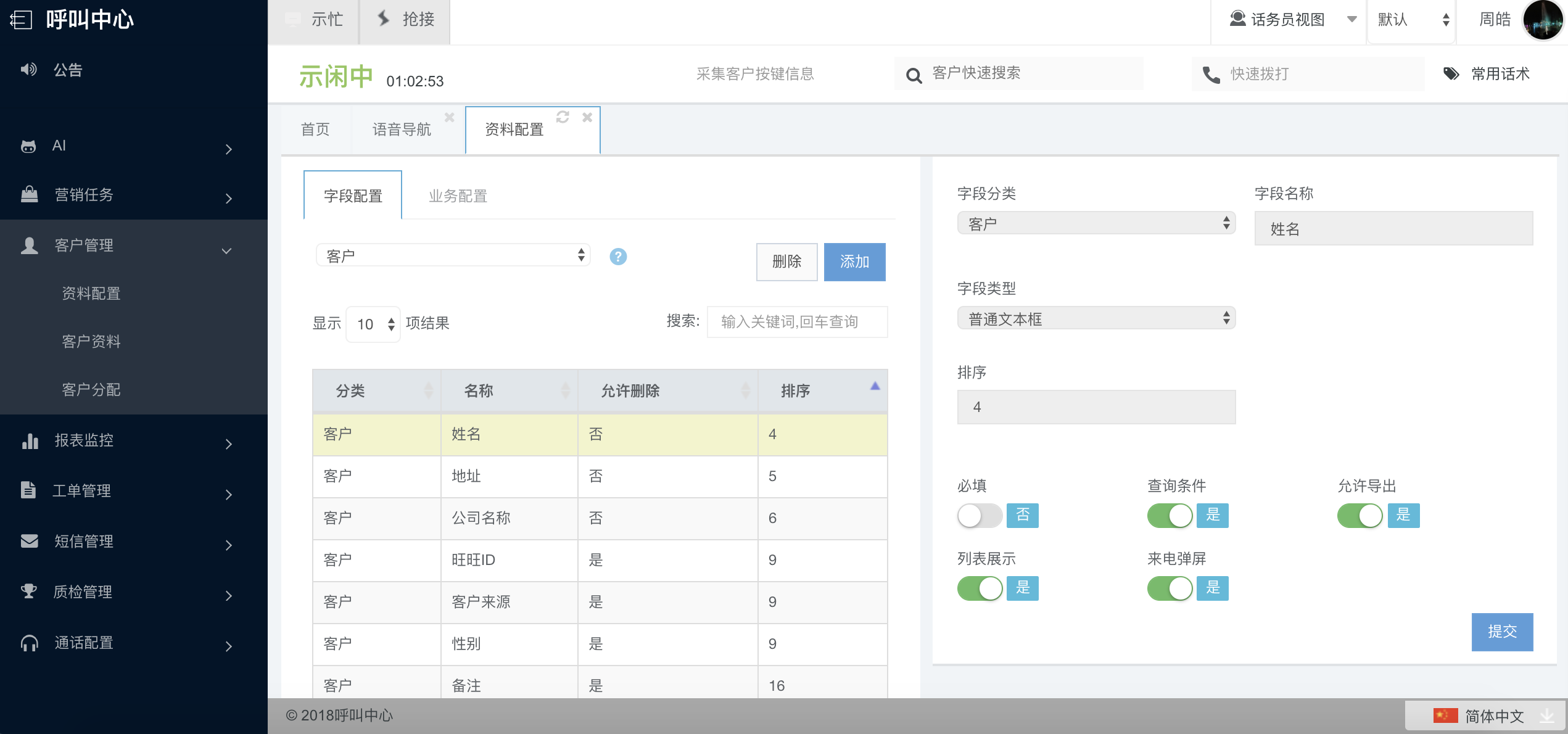 客户资料是由若干个不同的字段来组成的。添添呼为客户设计了灵活多样的业务与字段的组合形式。
