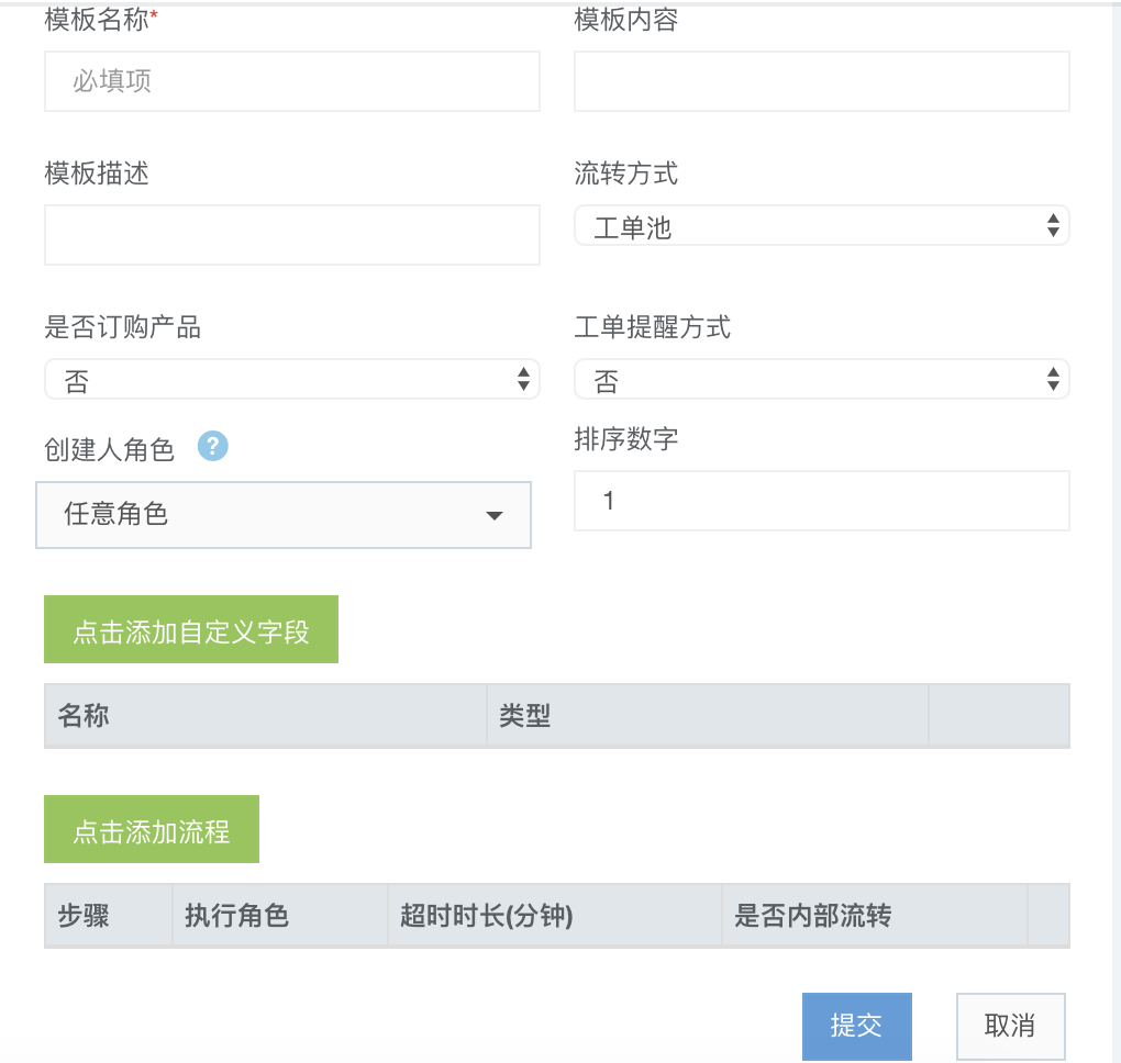 建立一个工单模板。通过菜单树“工单管理—工单模板”进入。