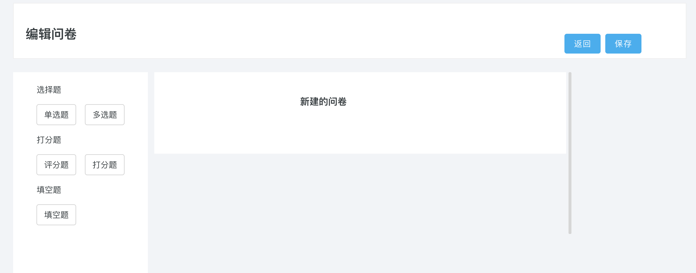 输入标题后点击“编辑”按钮后将会进入问卷的自助编辑设计页面