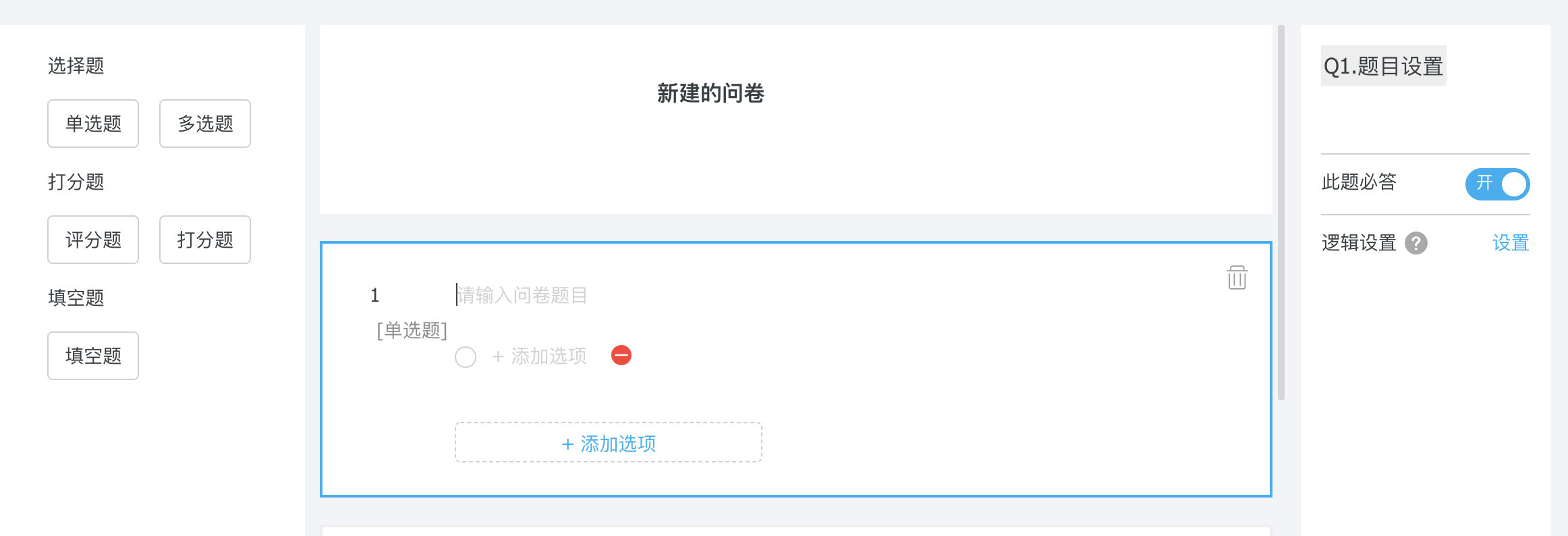 选择左侧的题型后将添加对应的题型到问卷中,进行具体的设计