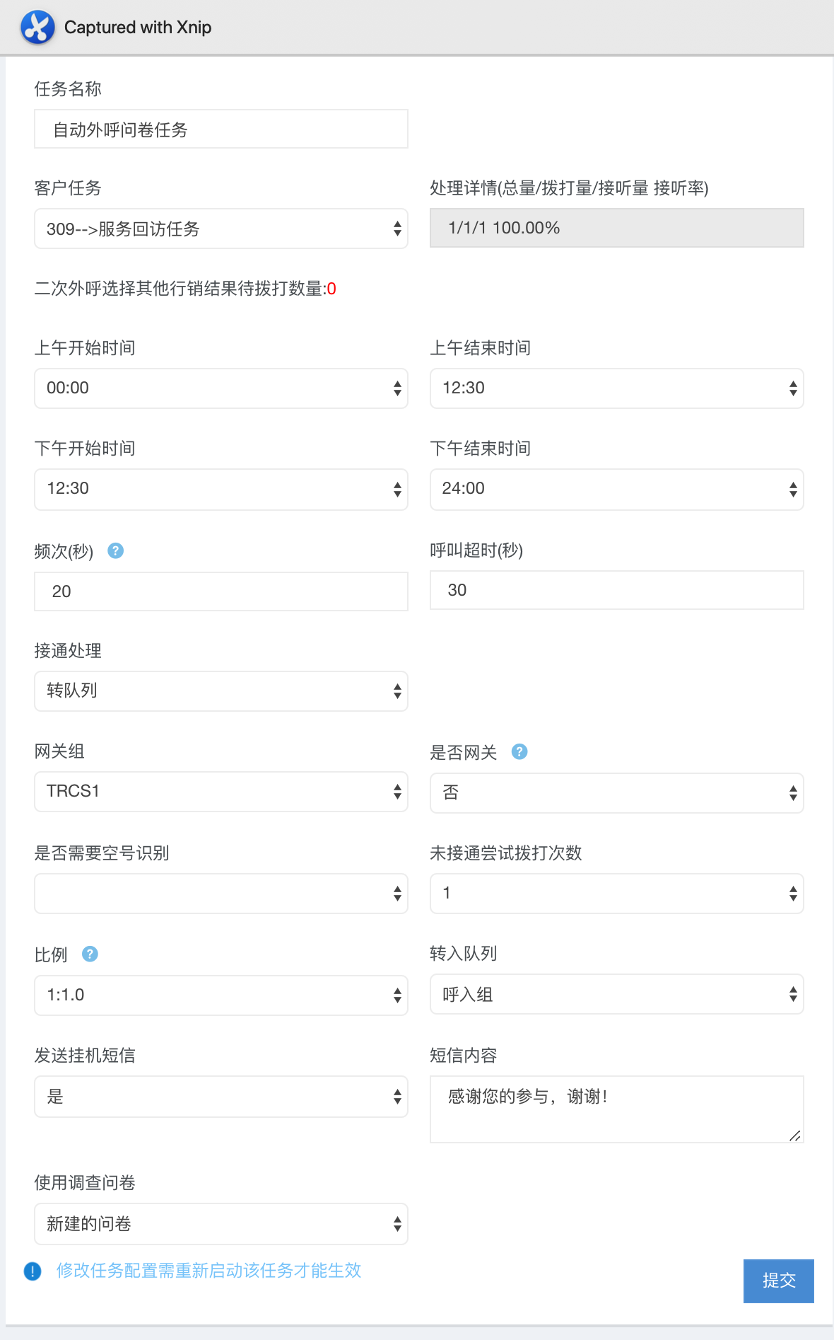 用户也可以在建立自动外呼任务时选择是否使用已发布的调查问卷