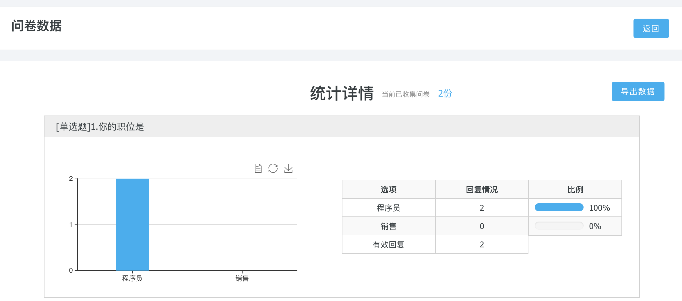在用户使用呼叫中心做回访工作时,往往需要借助外部工具如Excel表格手动记录问卷结果,现在,用户可以在系统中自行创建设计一套问卷,然后在呼叫过程中记录受访者的反馈,随后还可看到问卷的图形化的统计结果,非常方便。