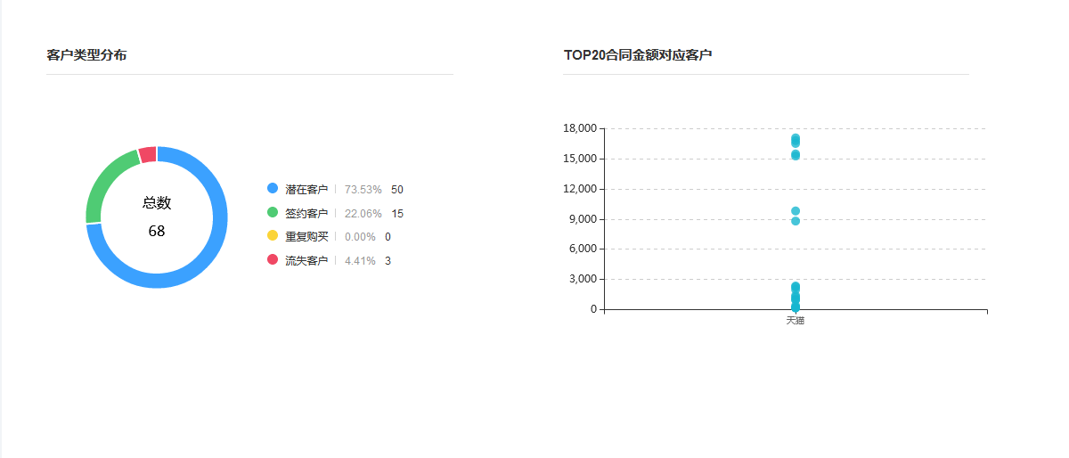 集成的CRM还为销售型的企业提供了丰富的分析报表,用于企业分析销售成效及决策。同时也支持根据不同客户企业业务特点,进行定制化开发。