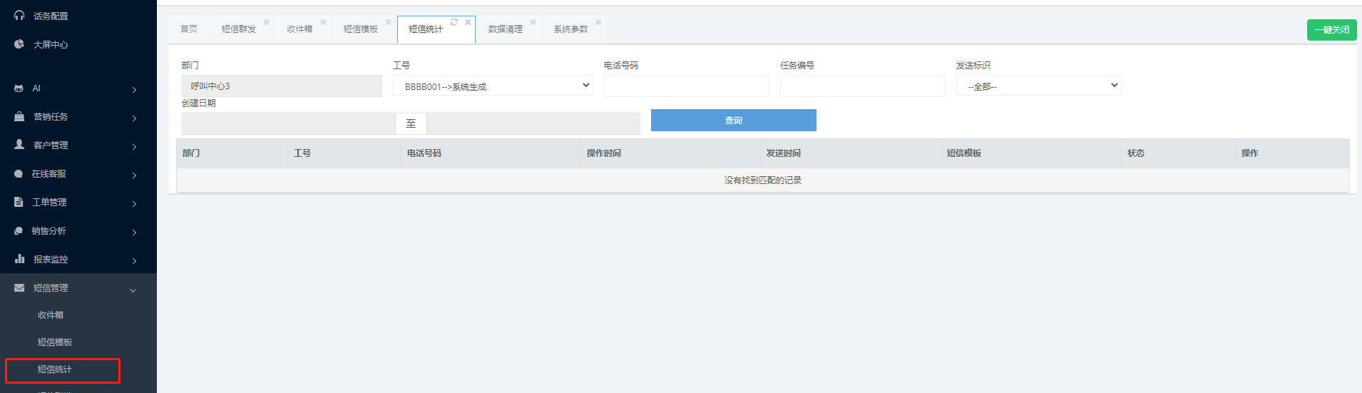 保存后,在客户资料页面可以点击发送短信的按钮,选择配置好的模板发送。