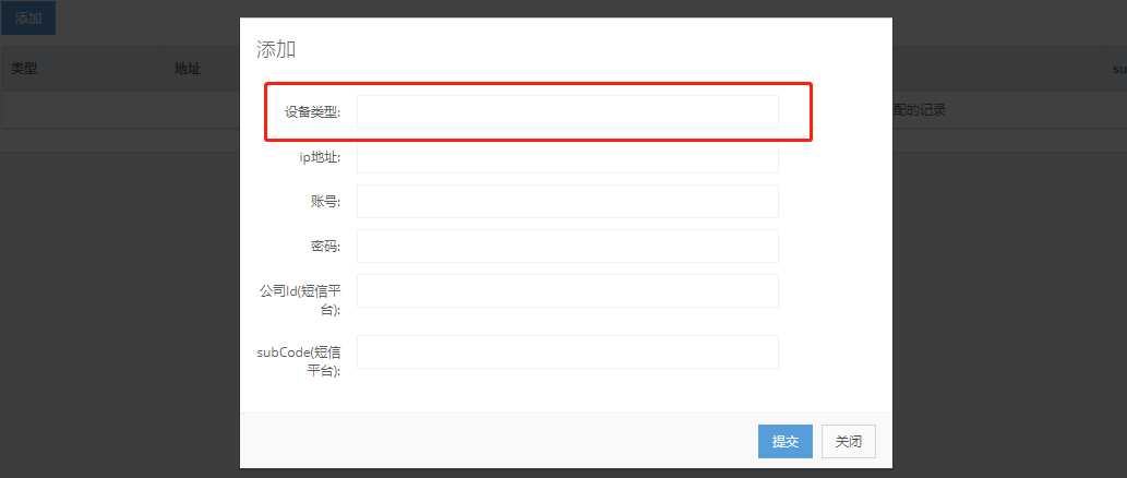 点击“ 添加新增配置 ”,设备类型指的是对接短信平台在本系统的编码,可在系统参数里查询“IFGETIDLEPORTTYPE”