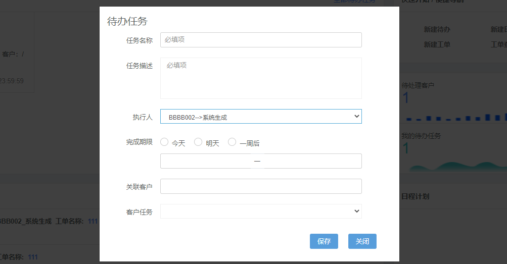 新建待办任务:可以在快捷导航里新建,也可以在"销售分析--待办任务"菜单中新建。管理者可以指定执行人。