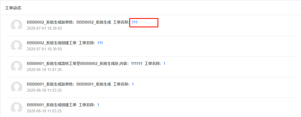 工单动态:点击工单名称链接可以跳转到工单详情页面。若你是当期处理者可直接处理工单。