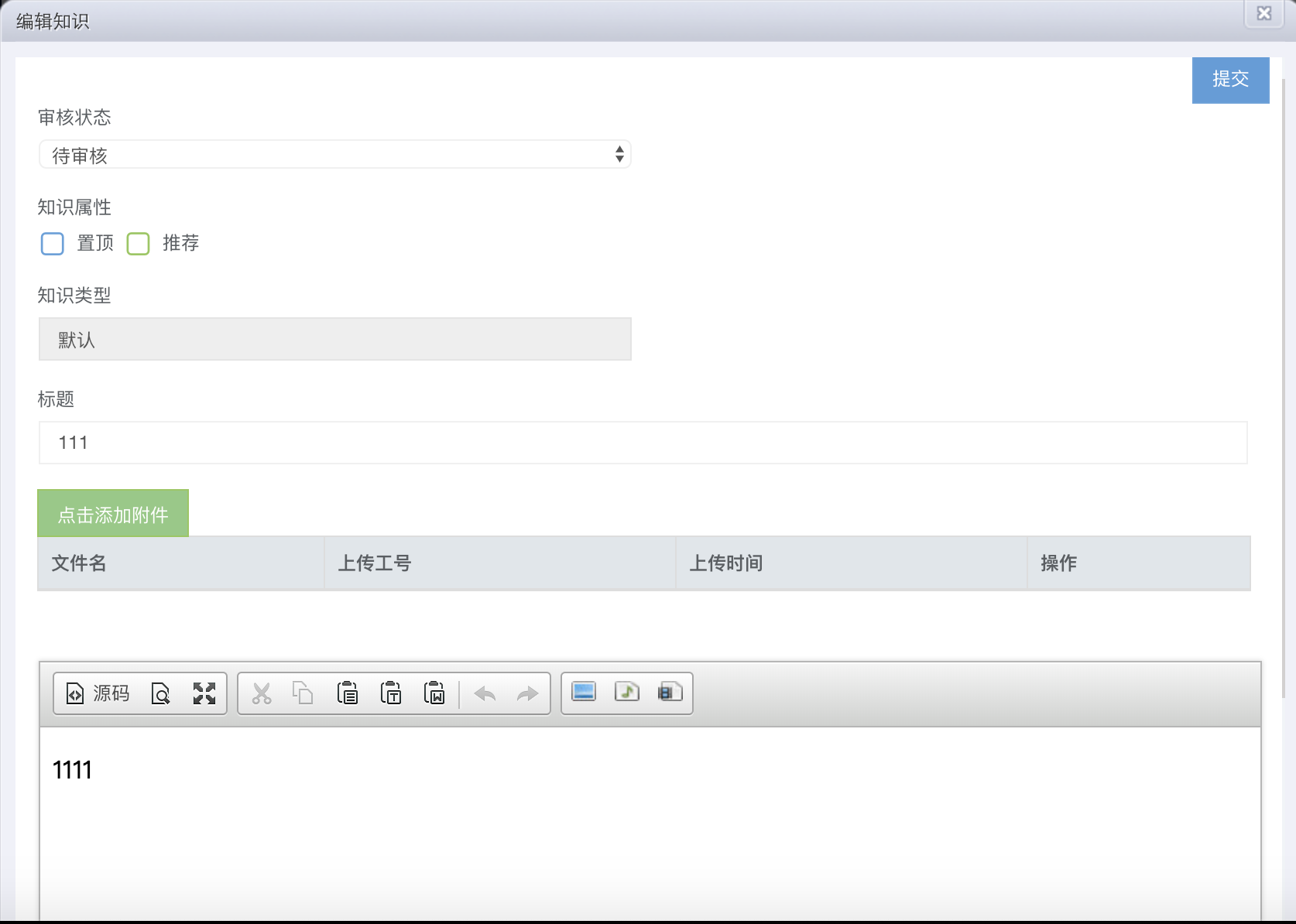 左侧的树是知识库的目录,点击“添加分类”进行修改。右侧为该目录下的知识详情,点击“添加知识”进行维护。