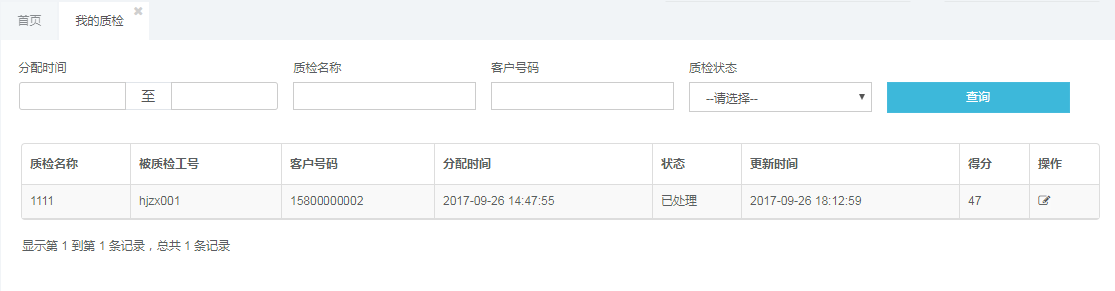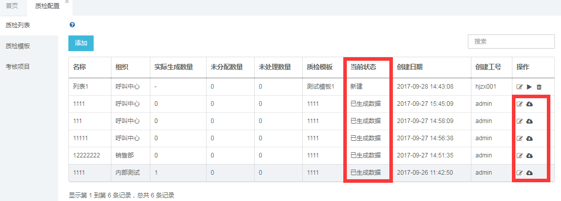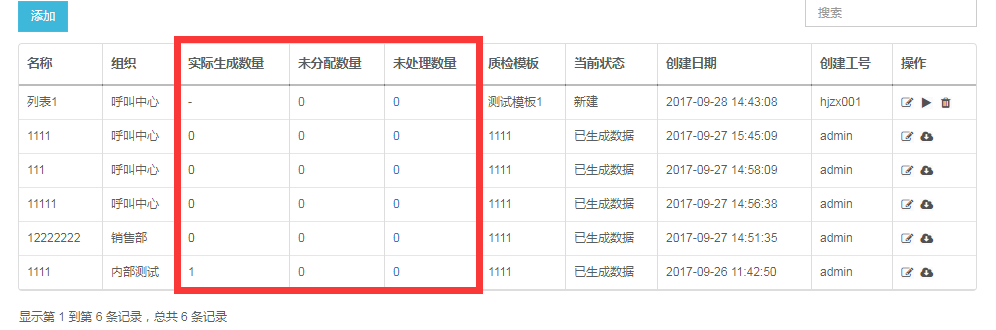 生成好了质检数据,就可以在列表中点击未分配数量进行分配。分配后,质检人员进行处理,处理结果会更新,在未处理数量中有所体现。
