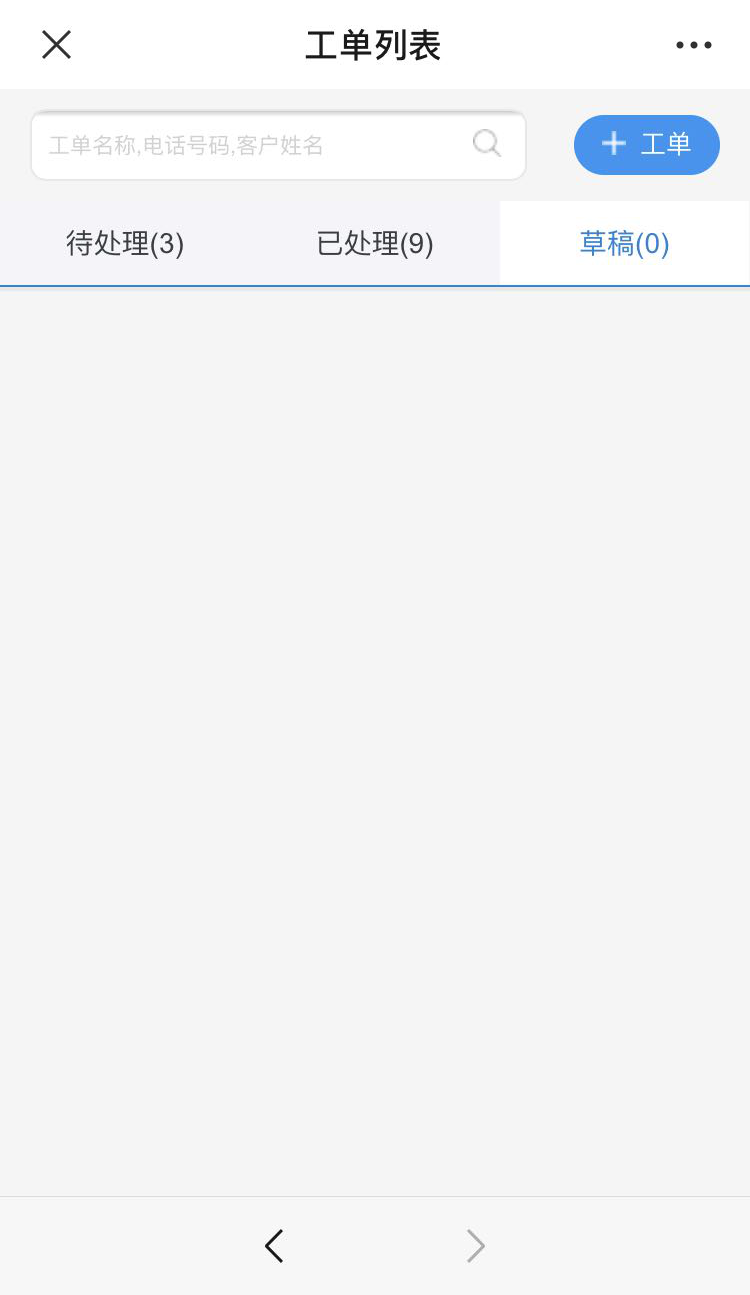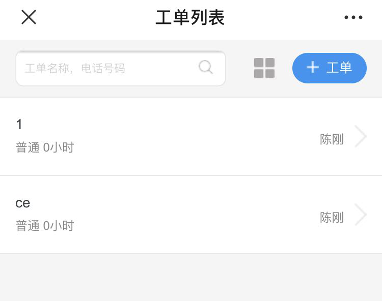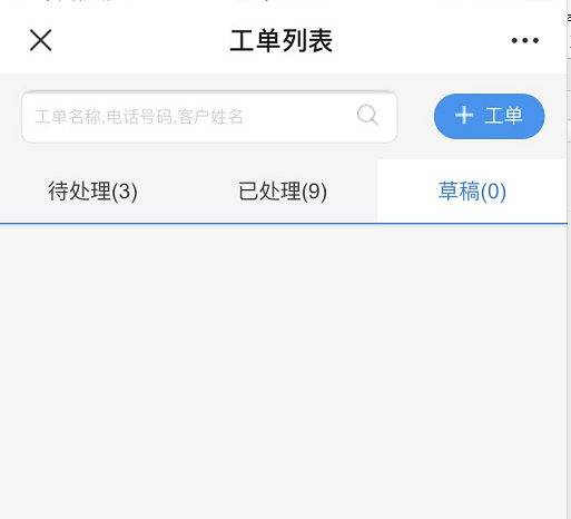 根据工单名称、电话号码查询自己所有状态的工单,点击工单查看工单详情。