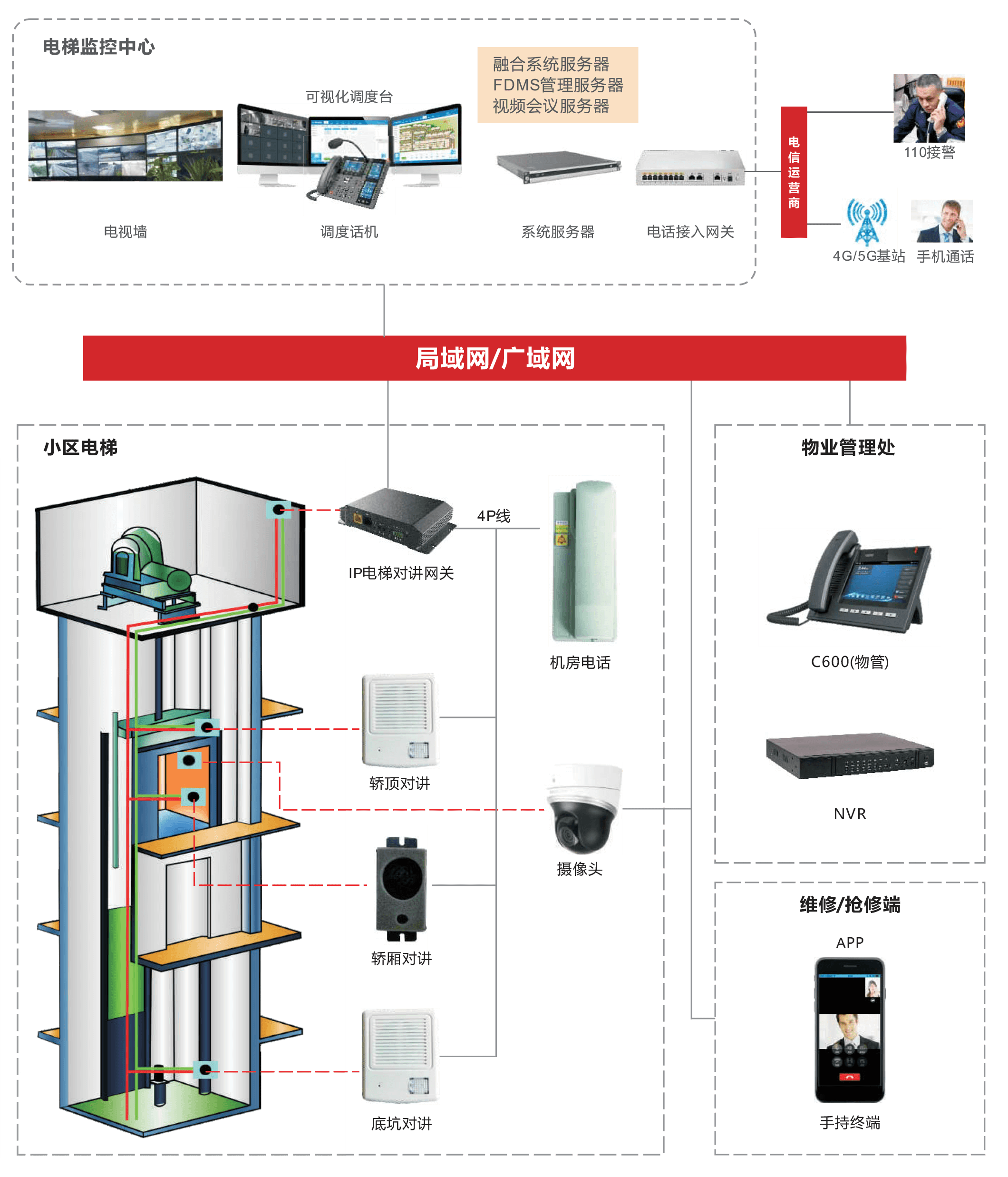 二或四线电梯IP六方对讲融合解决方案,助力电梯行业的信息化发展,将融合通信指挥技术应用于电梯日常维护和应急求助管理中,实现电梯管理的智慧运营。
