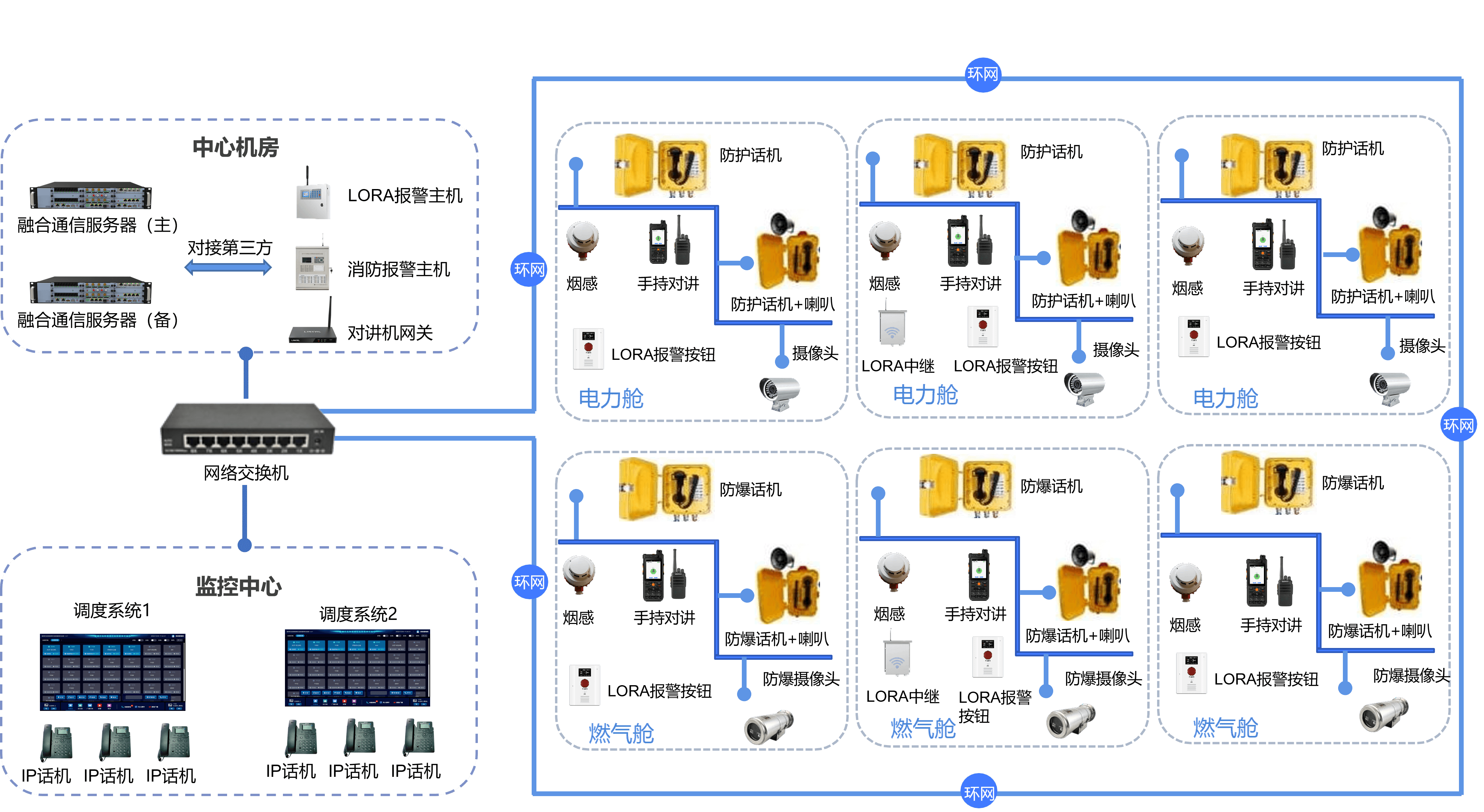 综合管廊IP广播对讲系统能够满足综合管廊内部各部门人员之间的移动通讯需要,为管廊内维修、值班、巡逻人员与控制室管理人员建立灵活的通信环境。通过控制中心的可视化调度台对管廊分区或全线的工作人员发起通知、喊话广播、紧急广播。对于突发事件可以及时发送命令和进行人员调度,并可以通过电话网关与外线电话建立联系。