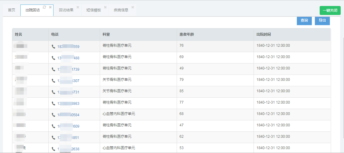 4. 通过电话随访,可以对医疗的质量进行跟踪,提高医生的服务技能,为科研以及员工考核晋升等提供数据支持。