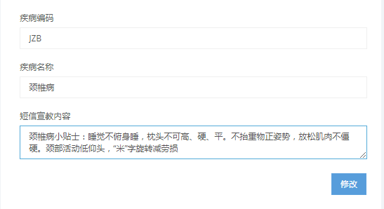 2. 通过医院工作人员的随访,使医院的服务由院内延伸到院外,可以对患者进行康复指导,减轻患者负担,提高医院的形象和服务质量。我们系统与医院HIS系统进行对接,HIS将门诊,入院,出院患者信息推送到我们随访平台,平台根据患者的诊断信息,定期会给患者发送短信小贴士,对患者进行康复指导。
