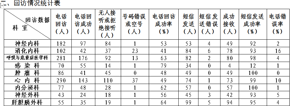 3. 电话随访,搭建医患沟通的平台,让患者感受到了关怀,促进医务人员服务的提高,加强以患者为中心的服务理念,增强医院的竞争力。患者在医院出院后,工作人员会在出院7天之后,对患者进行回访,指导后期康复,以及对医院工作的整体服务进行评价回访。