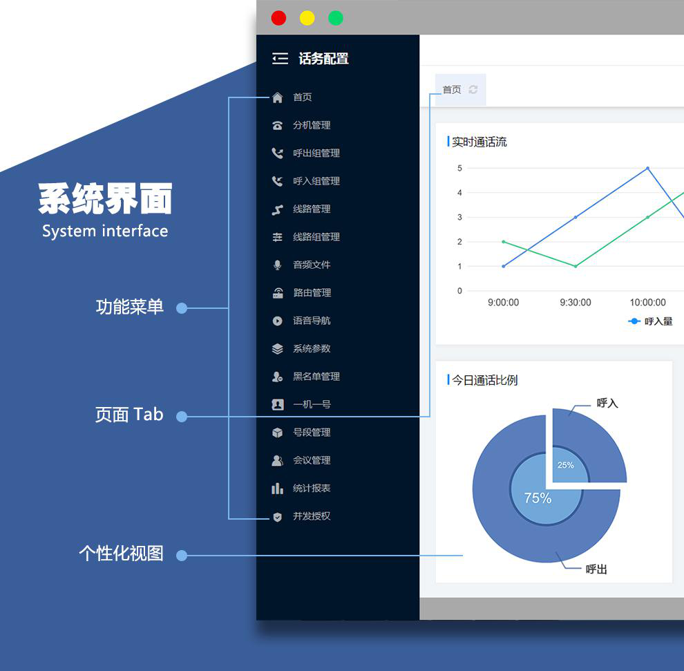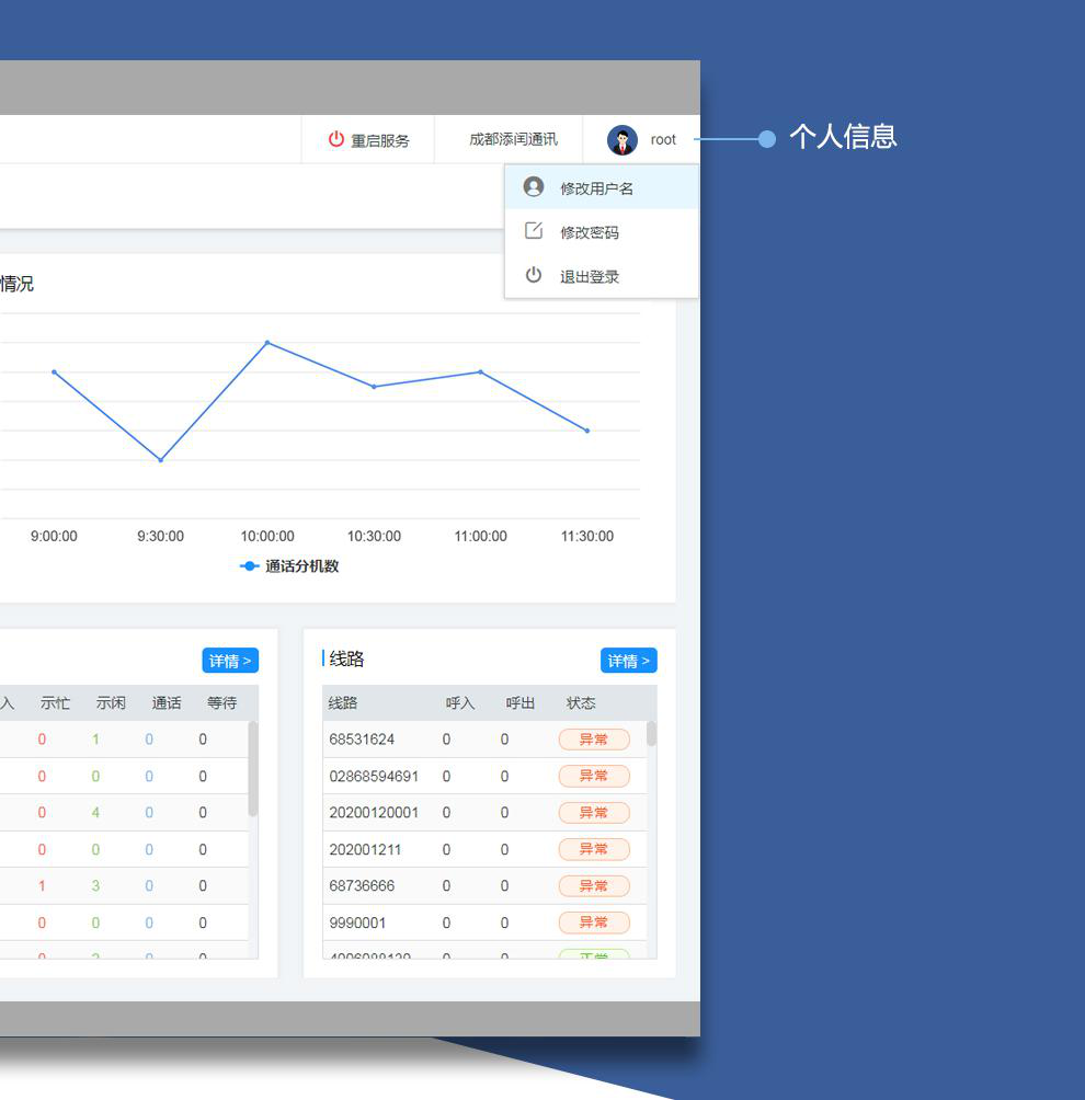 “添添呼” IPPBX是成都添闰结合十余年行业经验,针对呼叫中心业务需求而设计出的用户交换机。基于可维护、可管理、可运营的设计理念,它具备高并发、高稳定、可扩展等特点,采用 FreeSWITCH作为交换引擎,PBX是现代办公常用的电话通讯管理手段的一种,使电话管理者可集团性管理外线来电与内线呼出。为用户提供构造灵活高效的面向未来的呼叫中心解决方案。