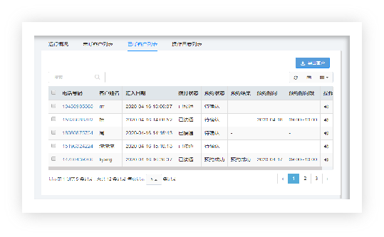 项目管理中话术配置成功以后,就可在此模块中新建外呼计划,并指向对应的话术,然后导入号码,启动改计划即可按照配置内容进行ai机器人外呼了。客户可在已呼客户列表中查看已经外呼的客户预约情况。